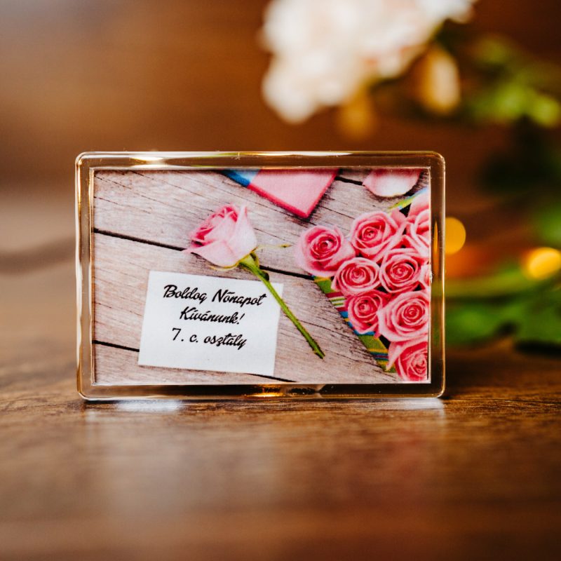 Egyedi rózsás nőnapos hűtőmágnes