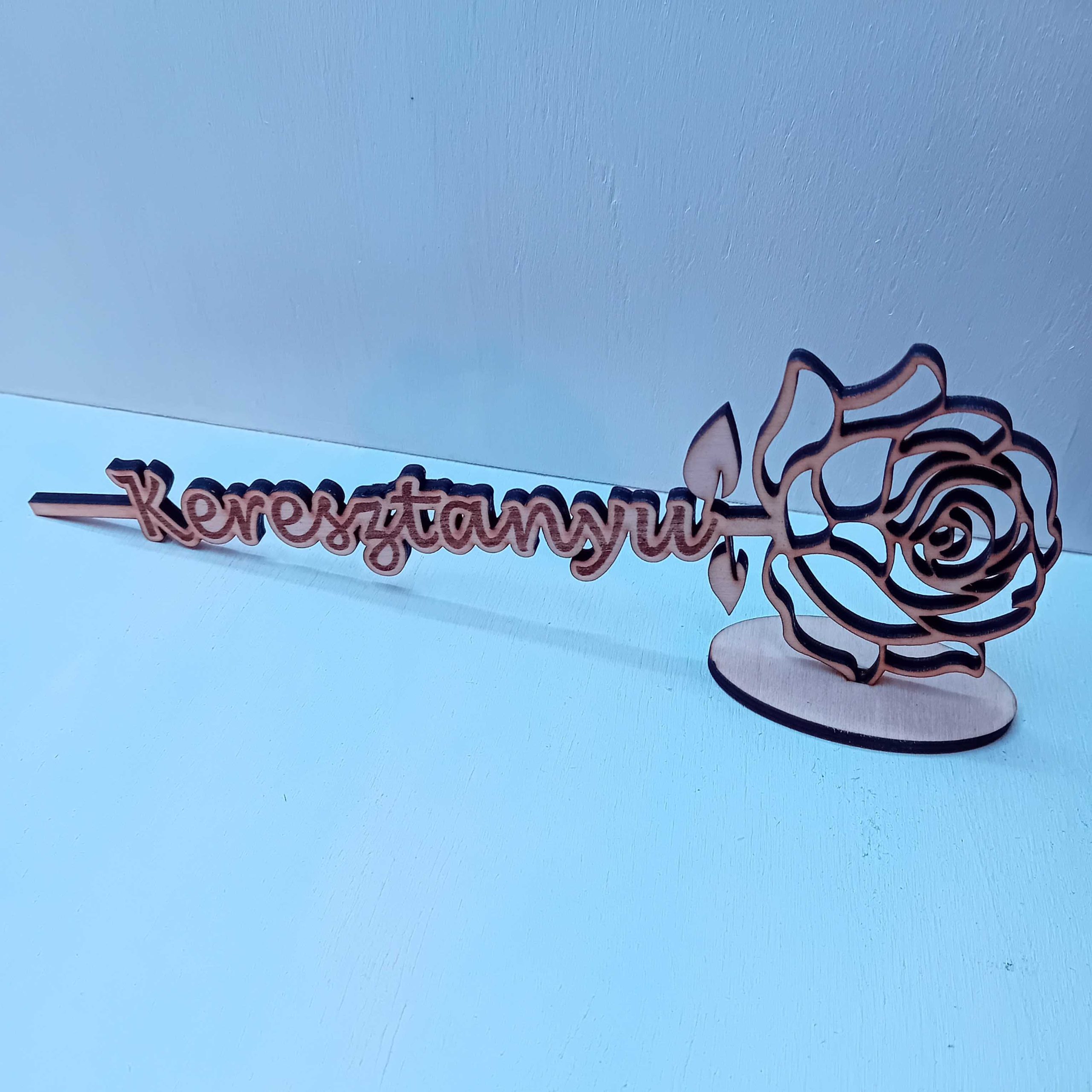 Gyönyörű rózsaszál Anya, Mama, Nagyi, Keresztanya, vagy bármely név felirattal elkészítjük. Talppal adjuk, hiszen így tudja sokáig a szobát díszíteni. Mérete kb 21X 8 cm.