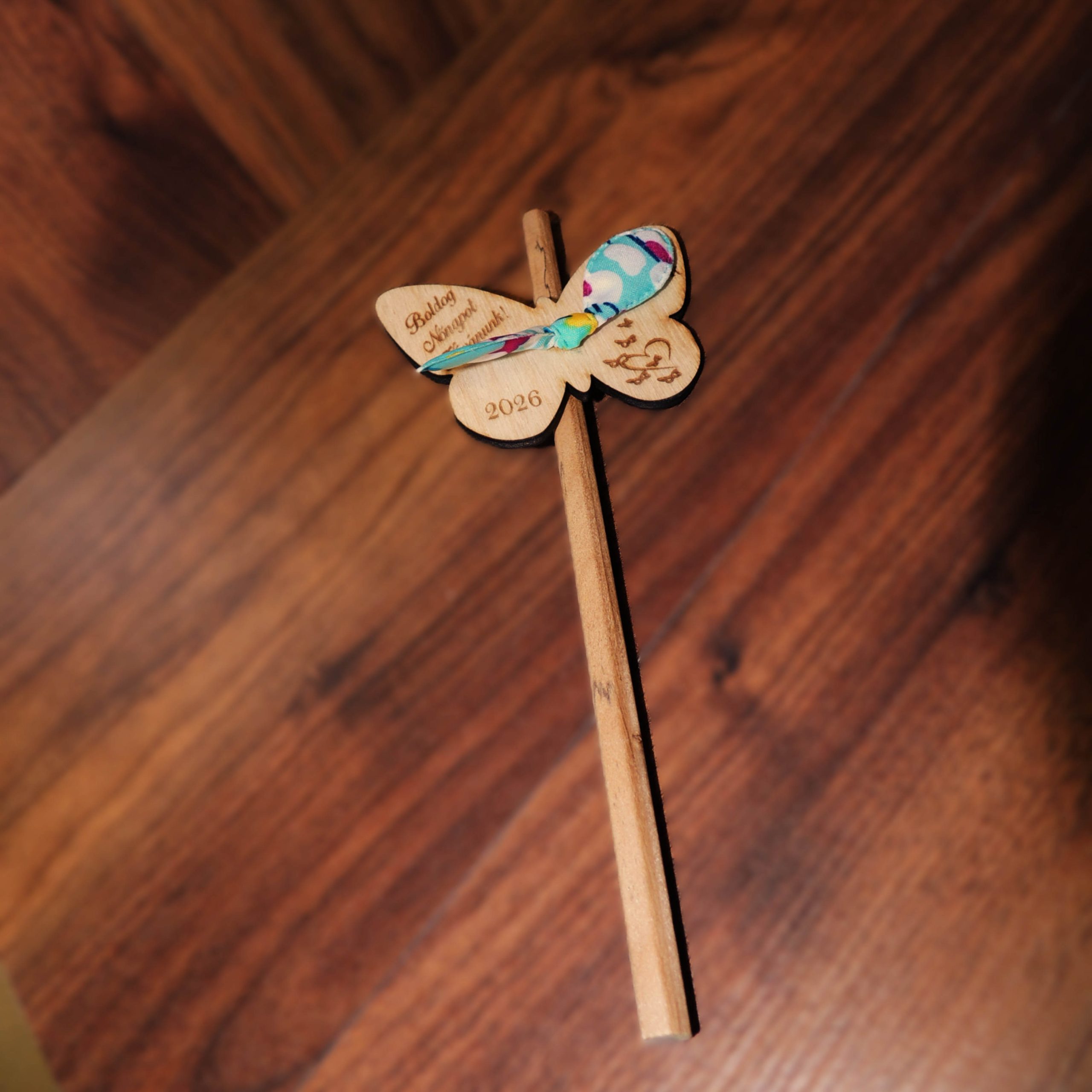 A pillangó 3mm vasgagságú fából készült, melyre ráakasztható a hajgumi, amihez hozzá van fogva a ceruza. Aranyos kis apróság kislányoknak oviba, suliba. Mérete : 7×5 cm Bármilyen felirattal kérhető, amit kérlek rendeléskor írj meg. Az ár tartalmazza a pillangót, a hajgumit és a ceruzát is.